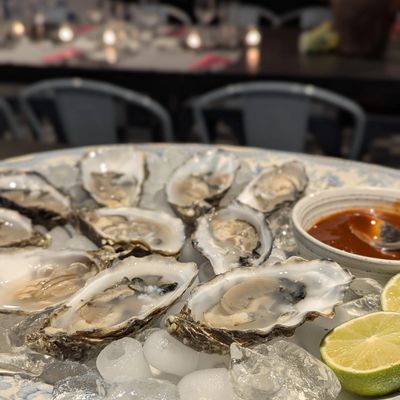 Porthilly Oysters 3-ways –Shallot Mignonette & Chive Flowers, Wasabi, Nori & Lime, Tomato & Spiced Horseradish & Nasturtium Oil